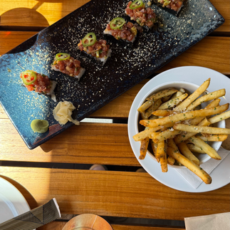 We started with appetizers, and the tuna sushi stack and truffle fries were a strong start. The sushi stack had layers of fresh tuna, creamy avocado, and crispy tempura bits, a really satisfying mix of flavours and textures. The truffle fries were hot, crunchy, and perfectly seasoned with just the right amount of truffle oil. Definitely a top-notch snack to share.