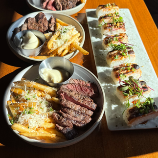 When it came time for mains, three of us went for the petite steak frites, which turned out to be the group favorite. The fries were crisp and perfectly seasoned, and while the steak was very tasty, the “petite” part is real, don’t expect a huge portion. If you're looking for something a little more filling, we’d recommend the aburi salmon sushi press, this one was a hit in both flavor and quantity.The only downside? The wait time between drinks and food was a bit long. Not terrible, but noticeable. Still, the vibe and quality made up for it.